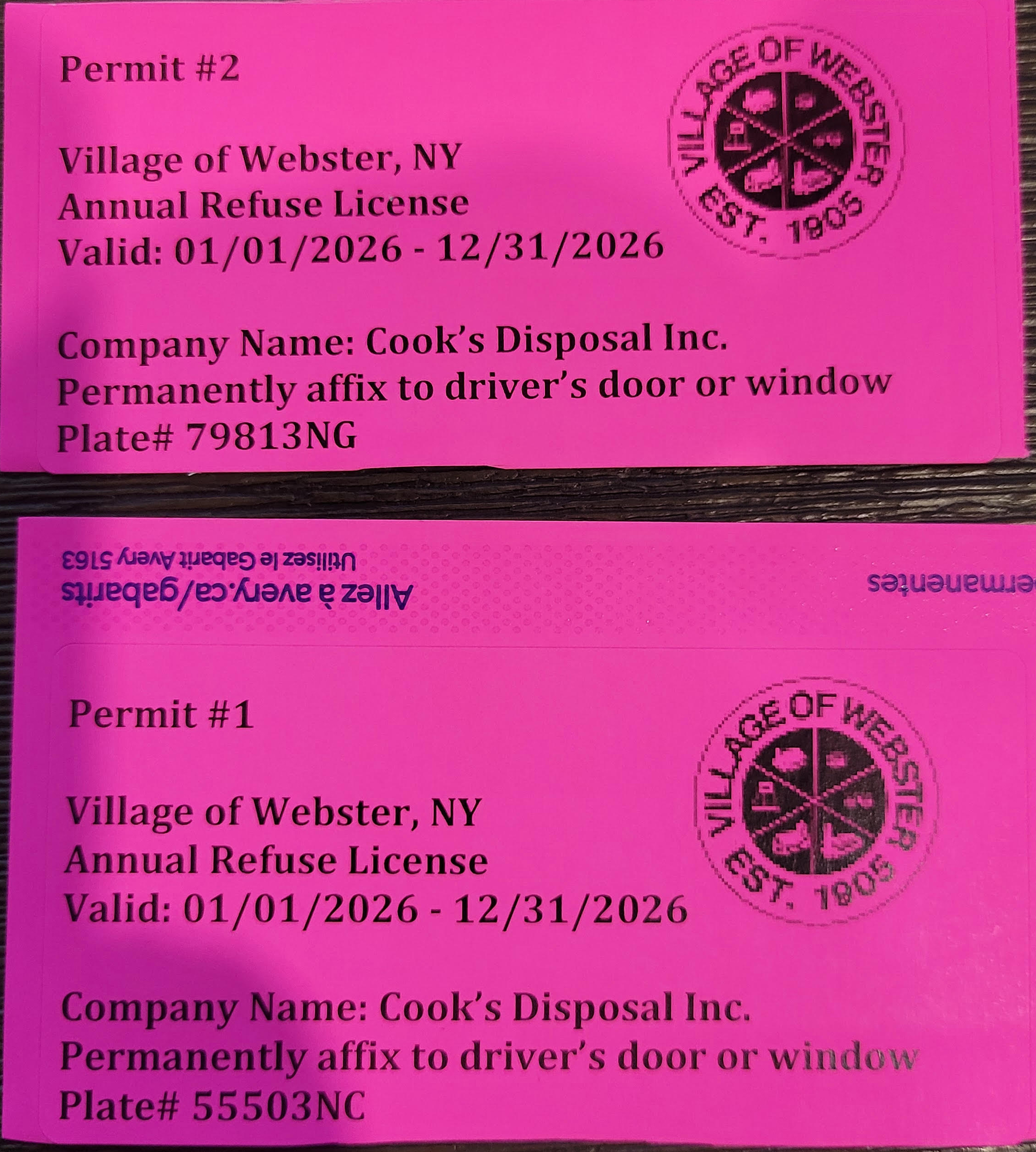 Does Cook's Disposal have a permit to do business?
